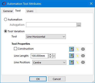 Depending on the chosen tool, the configurable tool properties will appear here. The following options can be set for each property: