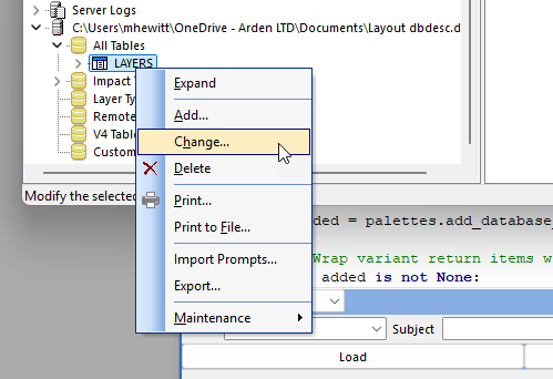 - Impact opens the database structure in a temporary, editable state.