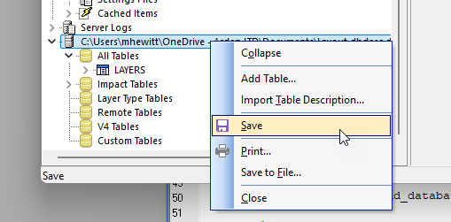 - Right-click the table and select Export.