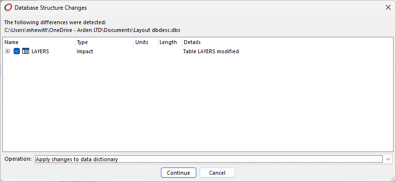 - When prompted for Operation, choose: Apply changes to data dictionary